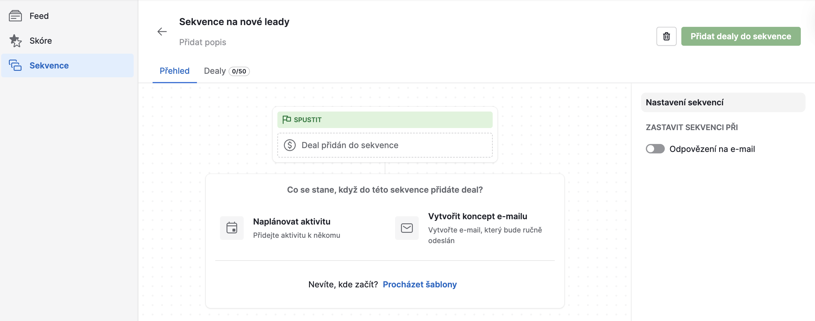 4. Přidání dealů do sekvence