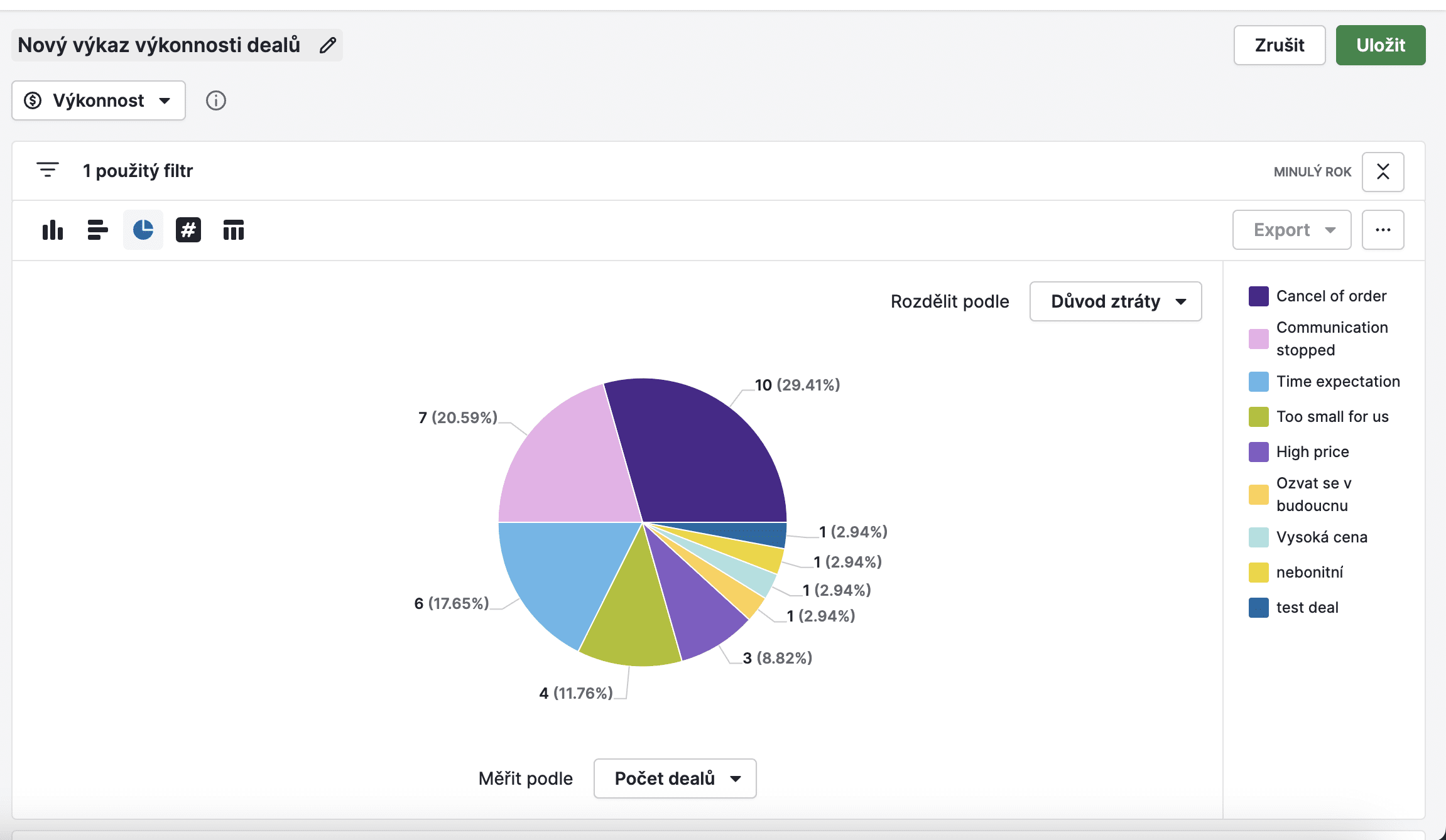 Používáte-li funkci vyhnívání - v pipedrive se to jmenuje neaktivní dny - tak můžete tuto proměnnou nově filtrovat i v reportech. Pokud deal visí v nějaké fázi například týden, tak se dá nastavit aby celý zčervenal - tzv rotting, vyhnívání. Vy v reportech si zobrazíte, například statistiku, jaká je úspěšnost u dealů, kterým se obchodníci aktivně věnovali, versus dealy, které nechali vyhnít.